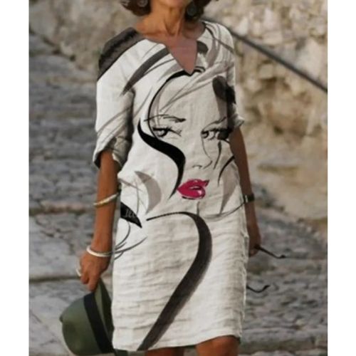 Rachelle | Anspruchsvolles Tunikakleid mit V-Ausschnitt für Damen | Weiß -
